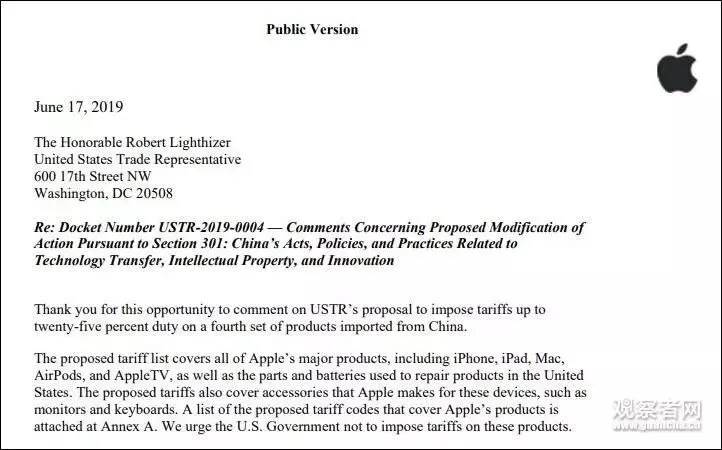 库克在2017年底造访中国时赞叹道,“这里的技术真令人难以置信。”去年5月,库克还透露,自己曾亲自告诉特朗普,对中国征收关税是错误的做法。今年6月,美国欲对华征收3000亿美元关税时,苹果终于打破沉默,公开宣布加入“反关税阵营”。