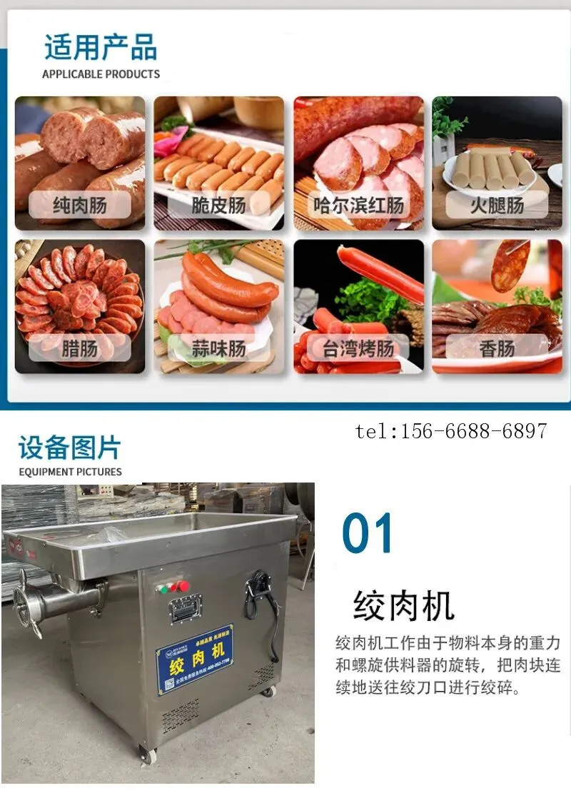 香肠蒜蓉肠成套设备 烤肠粉肠加工生产线 腊肠制作设备