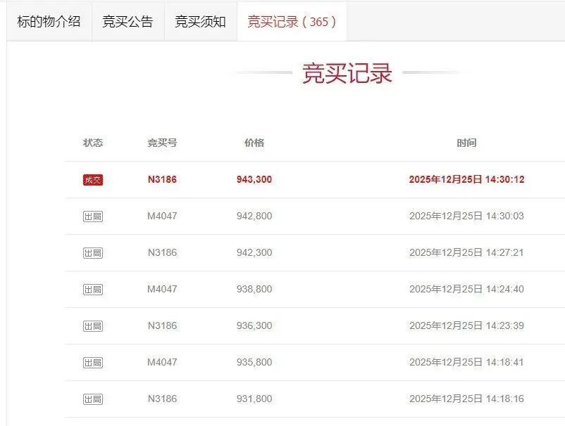 3.价值发现:最终成交价较起拍价实现显著溢价,体现拍卖机制对资产价值的充分释放。