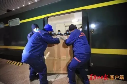 中国铁路哈尔滨局集团有限公司客运处处长尤君平说,一般情况,这些货物应该通过铁路货运列车运输,从广东到哈尔滨需要5天左右时间,耗时较长。为此,铁路部门连夜开会,研究运输方案,最终决定通过客运列车的行李车厢运输。