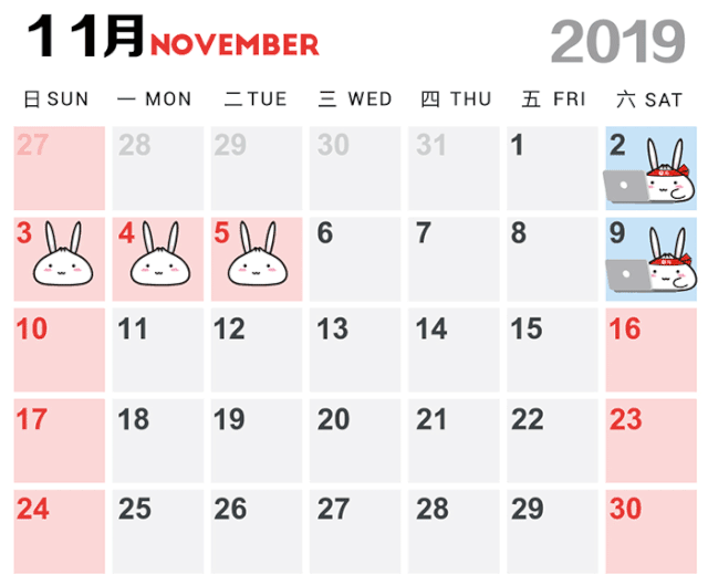 一、将11月4日(周一)、11月5日(周二)调整为休息日,相应将11月2日(周六)、11月9日(周六)调整为工作日。除保障进博会、重大活动举办和城市运转等必要的工作岗位外,本市机关、事业单位和社会团体按此调休。证券交易机构正常运行,不作调休。企业和其他单位可根据实际情况,自行安排。