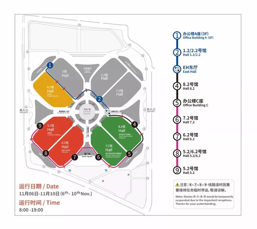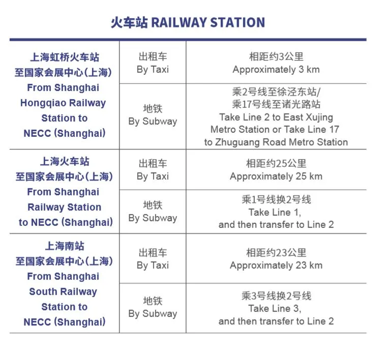 Tips:地铁2号线西侧起点站徐泾东站与17号线诸光路站均可到达国家会展中心(上海)。