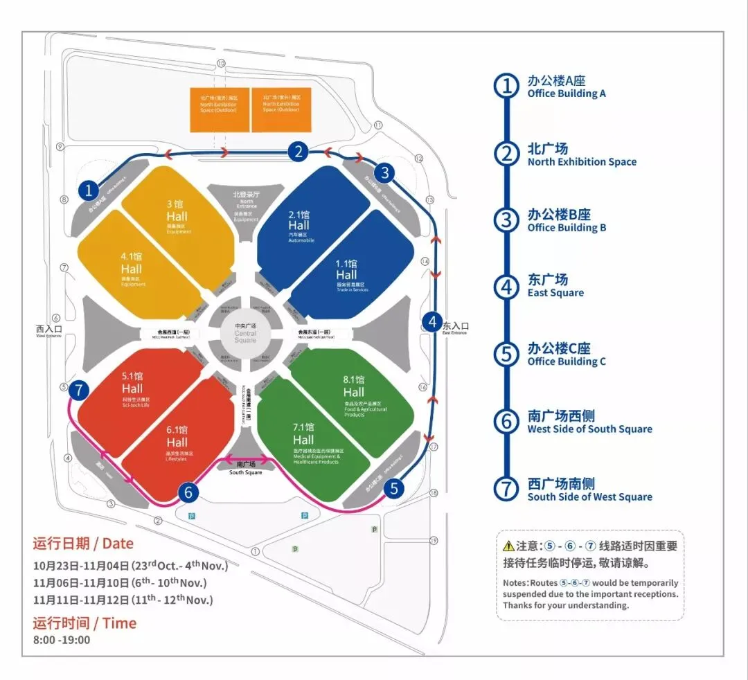第二届中国国际进口博览会期间(10月23日~11月12日),所有进入国家会展中心红线内的机动车辆实行 “一车一证一牌”,即所有进入展会区域的机动车辆应注册并持有与车辆车牌相符的车辆证件;车辆驾驶人员及乘坐人员进入红线范围时必须持有相应的人员通行证件。车辆进入红线内停放需先进行车辆安检。车辆完成车检后,按照车证背面指定路线前往对应停车区域停放。