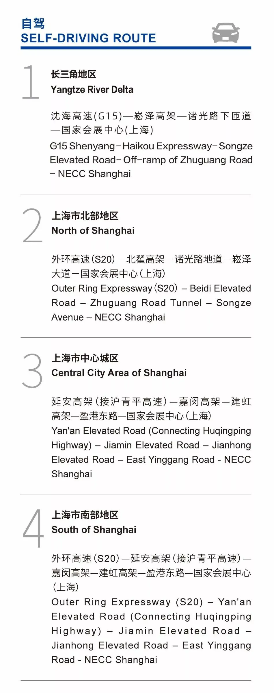 5. 洲际酒店专用车证。可直接从国展3号门进入酒店区域,车辆可直接下客后离场,若需停放酒店停车场,需在酒店停车场入口进行车检。(11月4-5日因洲际酒店举行重要活动不适用于此方案)