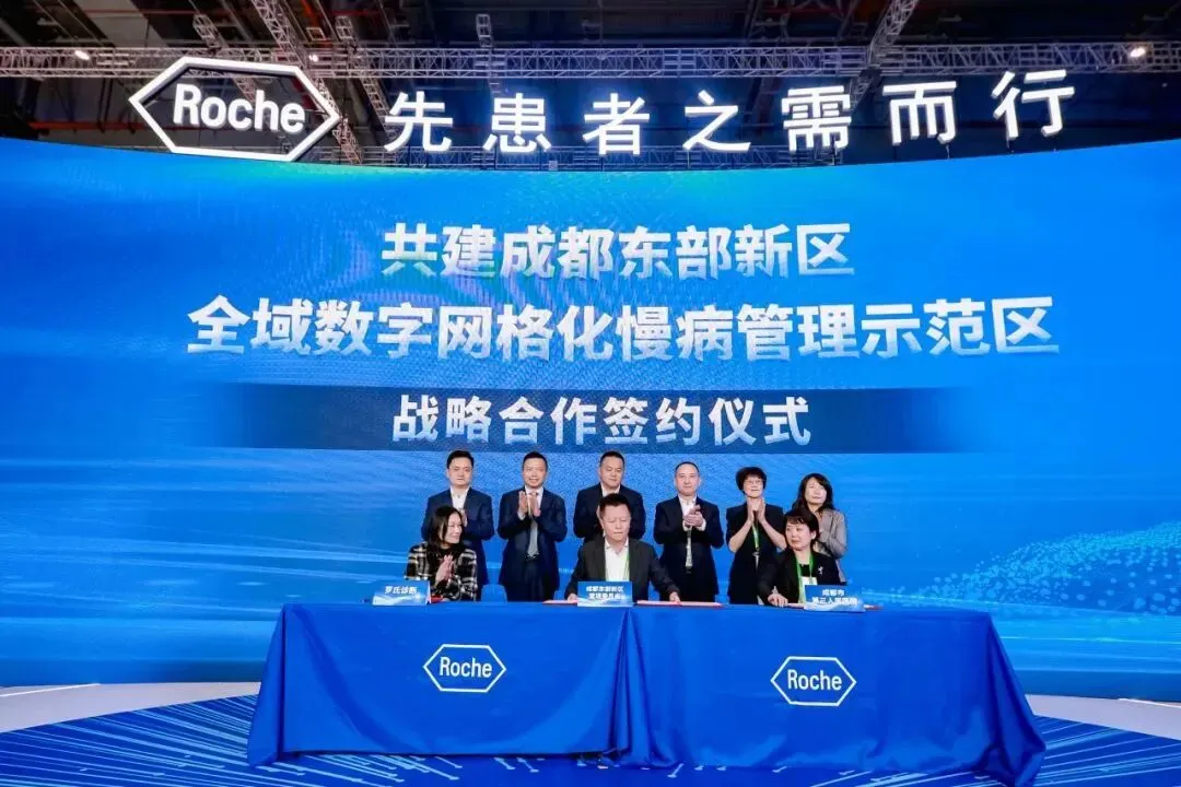11月7日,第六届中国国际进口博览会举行第三天。成都东部新区与成都市第三人民医院、罗氏诊断产品(上海)有限公司(以下简称罗氏诊断)签署共建全域数字网格化慢病管理示范区战略合作备忘录,通过示范区建设,实现资源共享、优势互补、合作共赢,共同应对人口老龄化形势下的慢性病医疗卫生挑战。此次签约被纳入成都市重大项目集中签约。