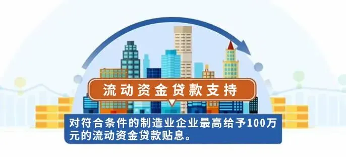 加强流动资金贷款支持,建立企业融资重点保障名单推送制度,组织政金企对接活动,对符合条件的制造业企业最高给予100万元的流动资金贷款贴息。