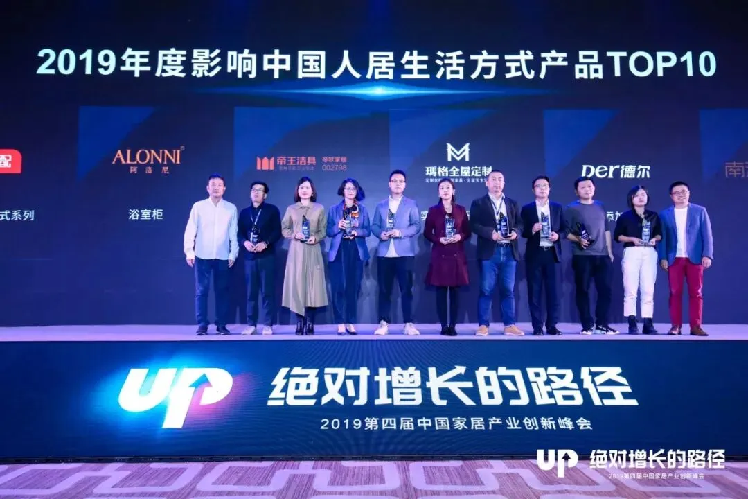 “2019年度影响中国家居生活方式产品TOP10”获奖产品为阿洛尼浴室柜,南洋迪克“禾气”,帝王洁具“C立方”,顾家家居“甜蜜时光全屋系列”,玛格全屋定制“实木•无界系列”,Der德尔“无醛添加地板”,尚品宅配“锦绣东方新中式系列”,美克美家“与你共舞沙发椅”,万和顶侧双吸油烟机,左右沙发“千里江山系列”。颁奖嘉宾为暨南大学生活方式研究院院长费勇,优居新媒体全国总编张永志。