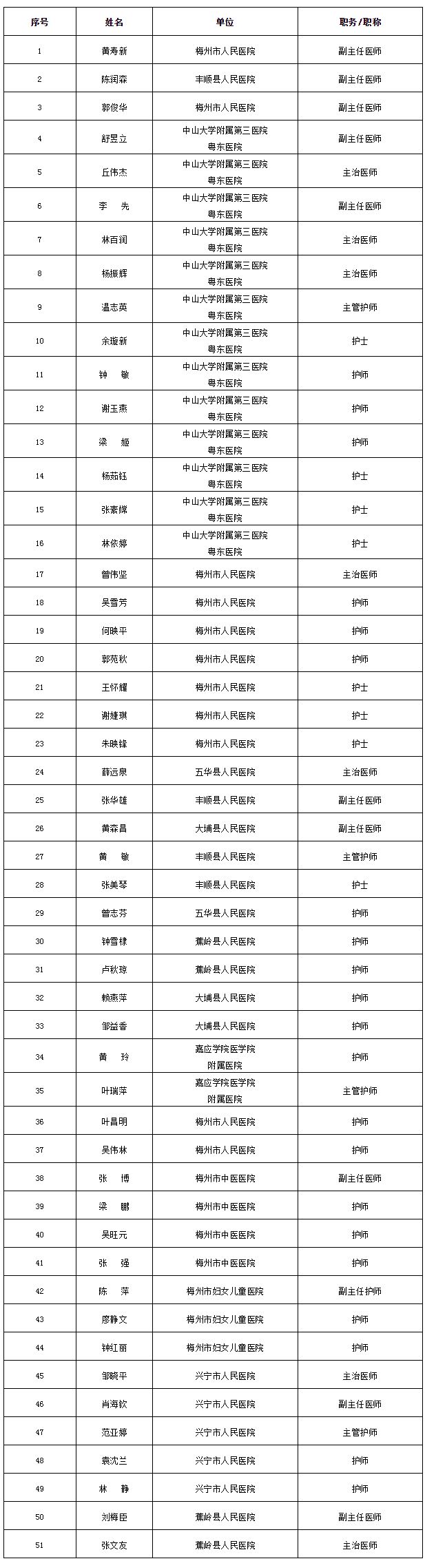 女,1971.09,五华县人民医院护士长。