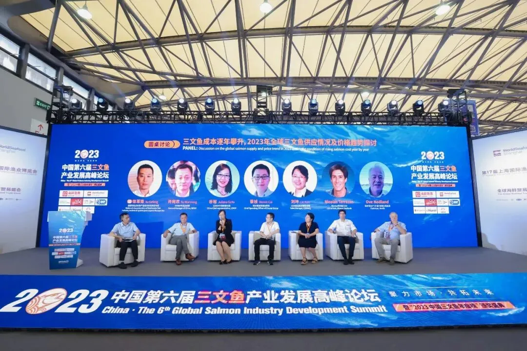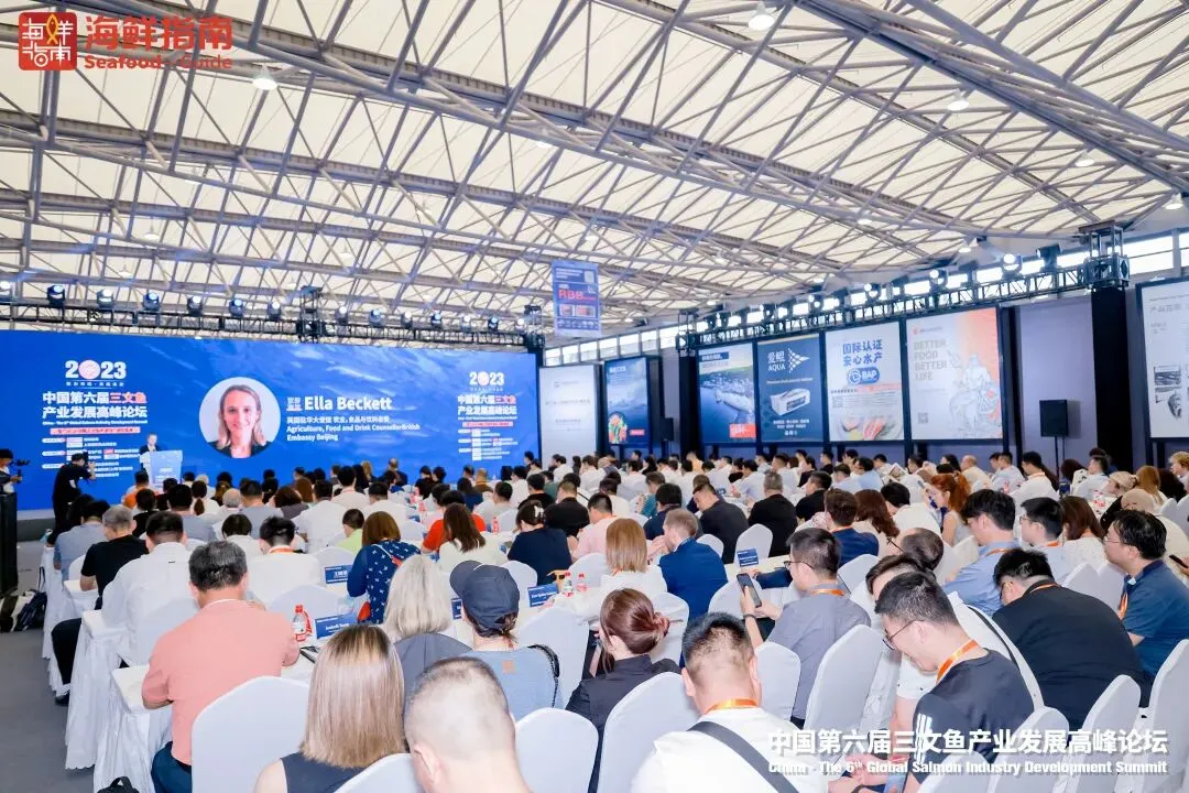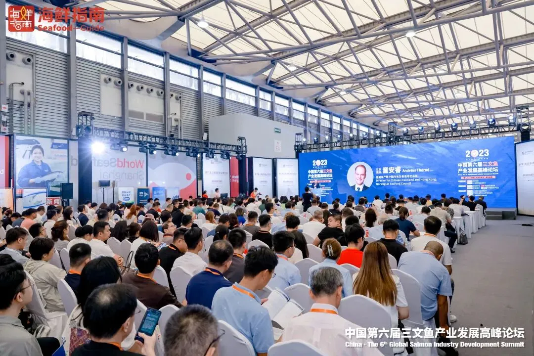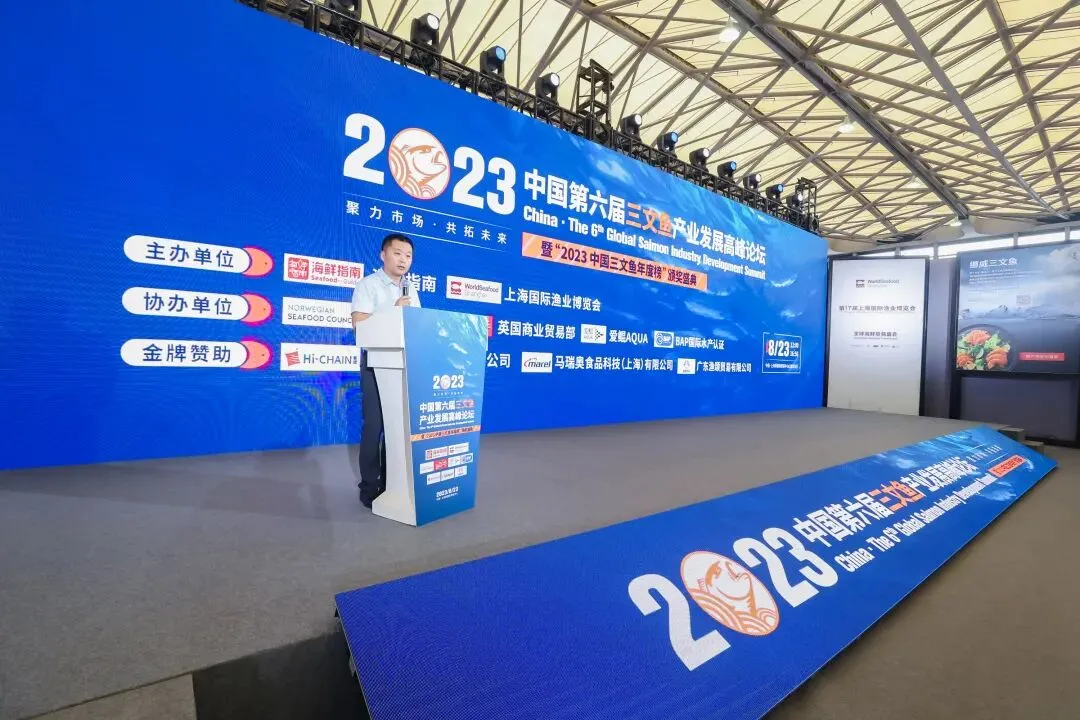 8月23日,2023中国·第六届三文鱼产业发展高峰论坛在上海新国际博览中心隆重举办。“2023中国三文鱼年度榜”颁奖盛典同期举行,现场近400位行业人士参与了本次论坛。峰会由海鲜指南、上海国际渔业博览会主办,挪威海产局、英国商业贸易部、爱鲲AQUA、BAP国际水产认证协办,上海盒成食品有限公司、马瑞奥食品科技(上海)有限公司、广东渔颂贸易有限公司金牌赞助,深圳市森洋渔商贸易有限公司饮用水冠名,广州市亿海惠里食品有限公司参会证冠名。