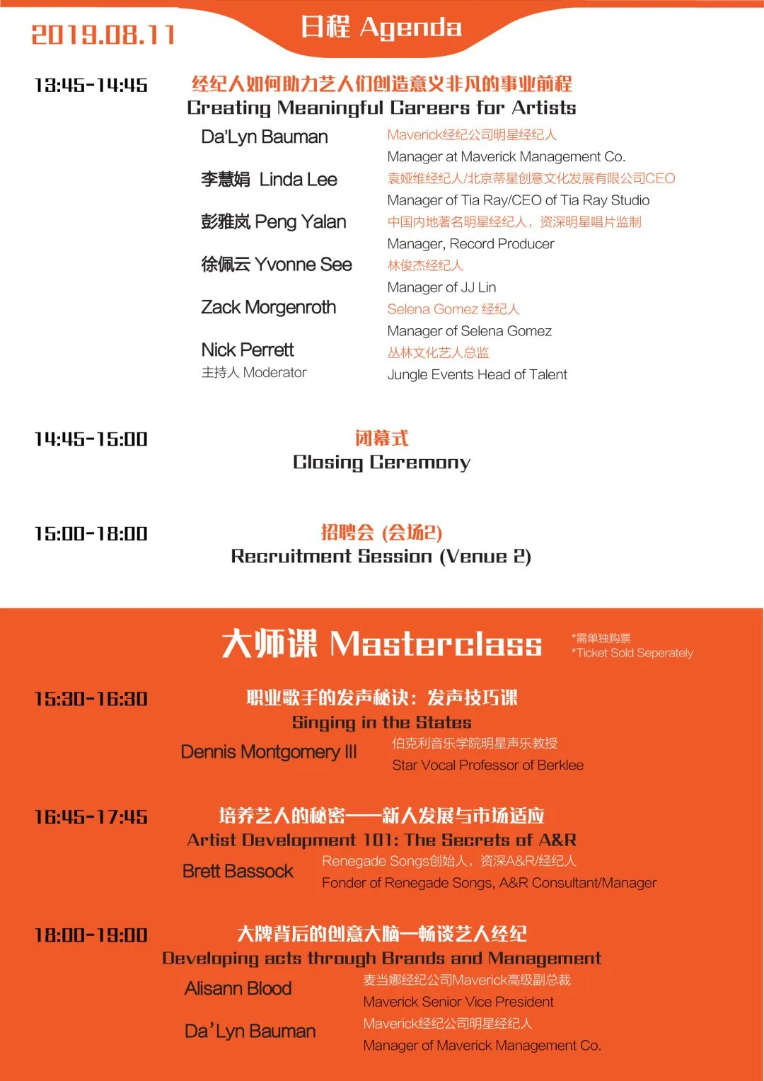 与全球音乐产业精英碰撞火花,这是你2天时间内吸收产业必修知识,了解内部行情,拓展人脉的绝佳机会,共同参与圆桌论坛、大师课、音乐创作大赛、音乐企业招聘会,还有机会与国际音乐产业大佬们一同参加Afterparty!