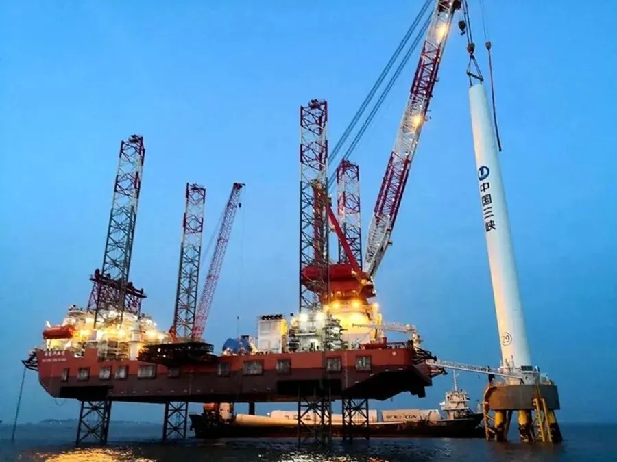 3月,厦门分公司兴化湾海上风电二期项目完成59号机位59-1钢管桩接桩工作。
