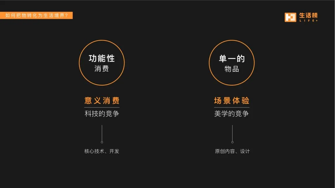 费勇在分享中提到,现代社会的两个改变:功能性消费转化为意义性消费;从单一的物品消费到复杂的场景化消费,传统的商品已经不能满足消费者需求,商品需要表达生活美学。