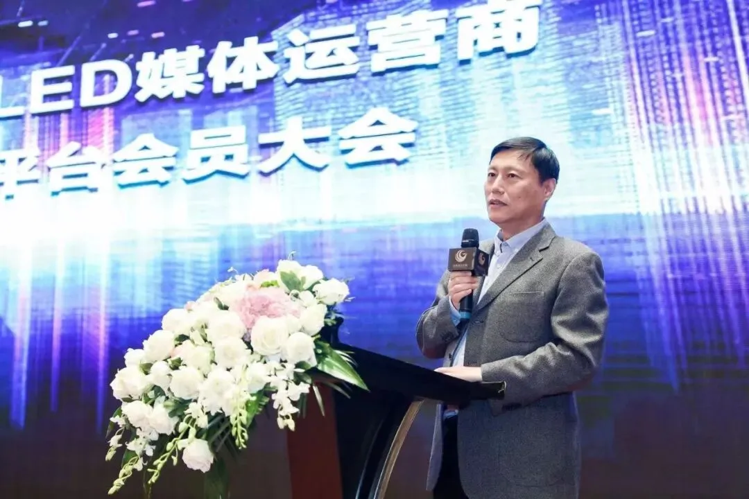 中国广告协会副秘书长赵践致辞,简述了全国户外LED媒体运营商共建共享平台成立的意义以及取得的成果。