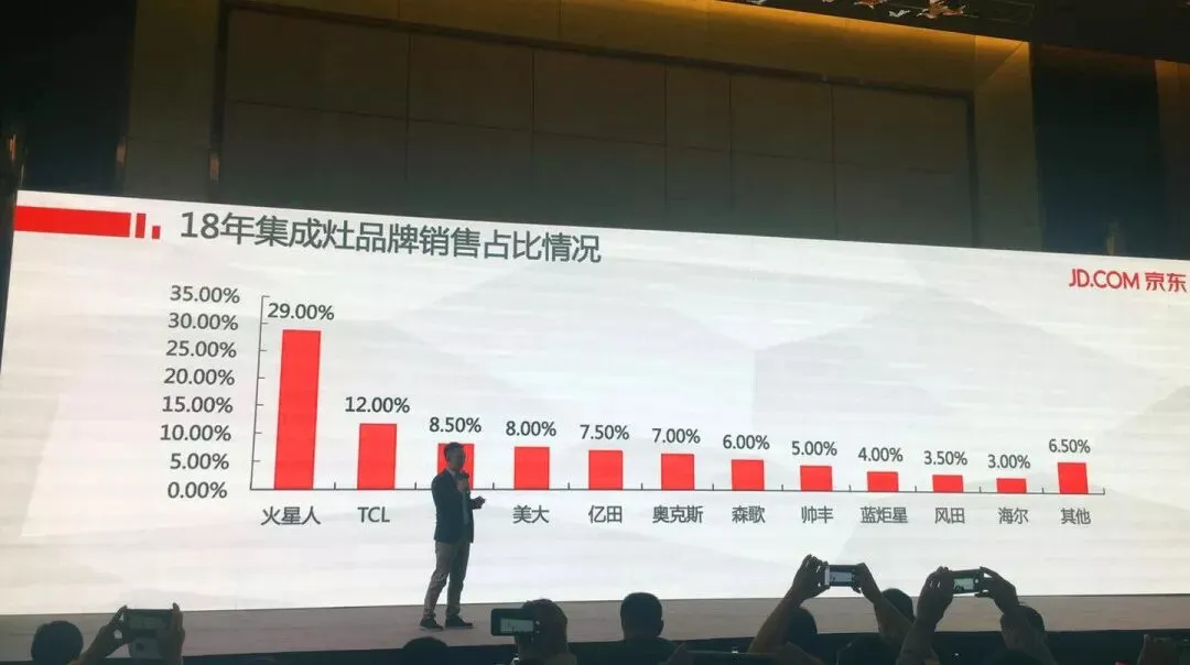 同时,火星人集成灶在京东销售份额占到29%,领先第二名两倍以上,遥遥领先!