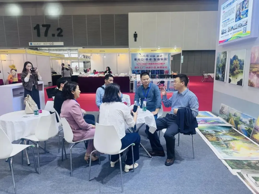 当岭南的海风邂逅赣东的丹青笔墨,一场文化与商机的碰撞在2025年12月19日广交会上精彩上演。黎川油画组团亮相,雅汇文化传播有限公司、星晨文化传播有限公司、仕龙文化传播有限公司、蓝艺文化传播有限公司四家规上企业带着满满诚意与匠心之作奔赴盛会,让这片土地孕育的艺术瑰宝,在广交会的璀璨舞台上绽放独特光彩。