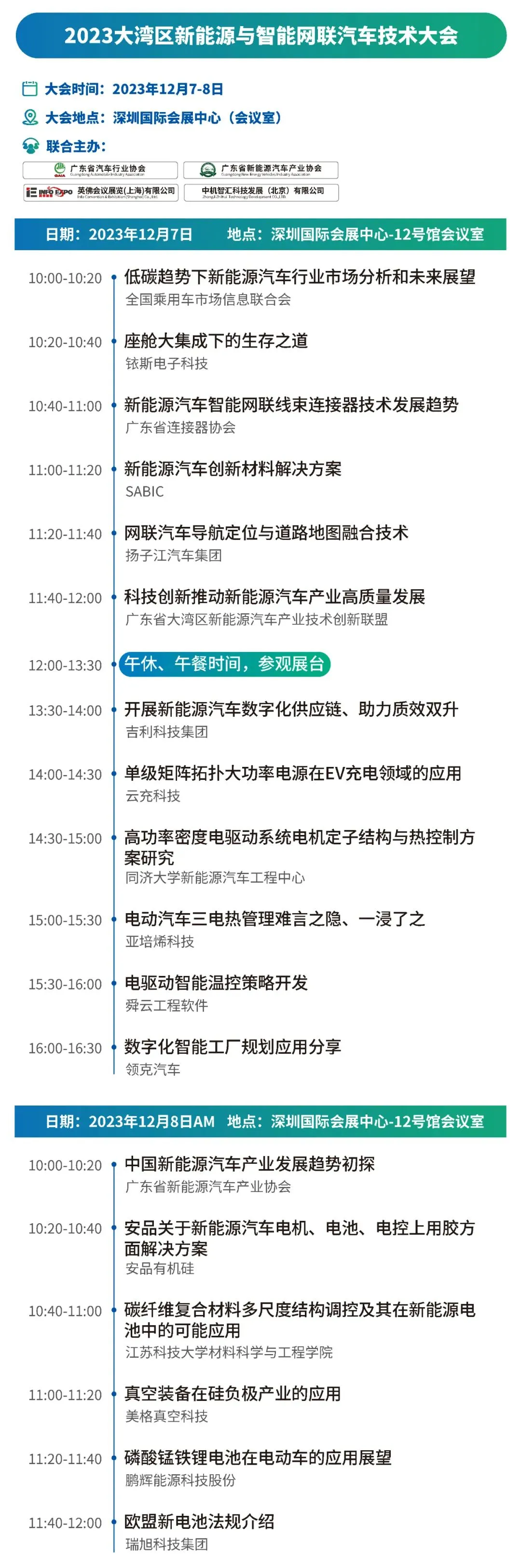 超4万平方米线下展览、20+同期活动、丰富多元配套活动,全球20多个国家和地区近300家行业合作媒体全力推广报道——由英佛会展联合广东省汽车行业协会、广东省新能源汽车产业协会及相关行业组织共同主办的 2023第十一届大湾区国际新能源汽车技术与供应链展览会将于2023年12月6日-12月8日在深圳国际会展中心(宝安新馆10-12馆)举行。展会精准规划布局覆盖全产业链,动态的场景化产线展示、多种热点主题的论坛活动、以及自由灵活的商贸对接交互方式,为全行业呈现一场大规模、高品质、聚集化的现象级行业盛宴!让您随时随地了解汽车前沿技术趋势,与行业领头企业进行全方位对标,为新能源汽车主机厂、Tier1、Tier2及汽车相关行业人士搭建一站式技术交流平台!