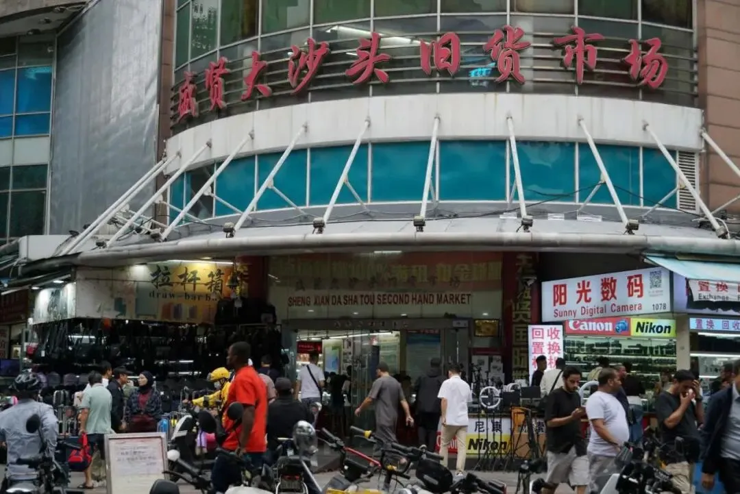 邻近的盛贤大沙头旧货交易市场内同样人流如织,且顾客也多为非洲、中东、东南亚面孔。市场主要分为三层,一层为手机、平板等通讯设备批发区,二层主营相机、镜头和笔记本电脑,三层则以老唱片这类复古文化用品为主。