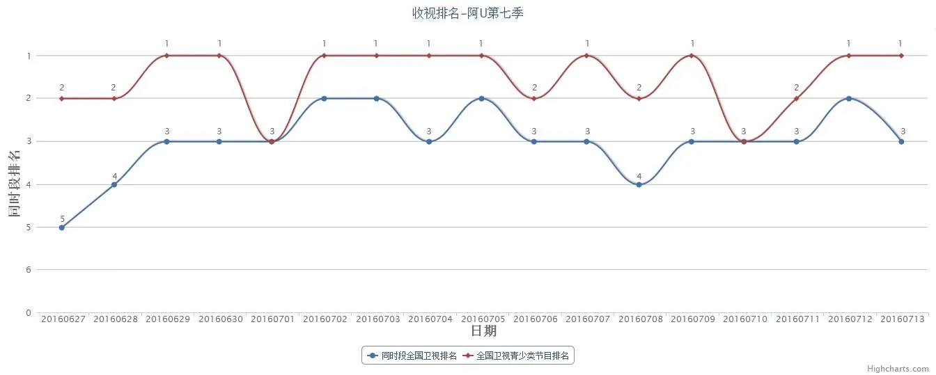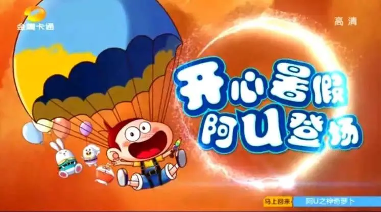 ►而《阿U》系列动画自2011年初创,2012年首次在央视首播以来,共创作播出了8部系列片,3部短片。《阿U》第7、8季新片在金鹰卡通卫视首播期间,收视率在全国卫视青少类节目排名稳定前三,多次占据第一。据2015年5月国家广电总局的调研数据显示,阿U在全国小学生中的品牌知晓度达63.3%。