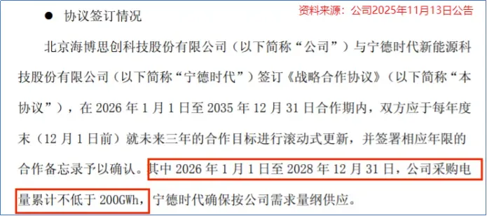 同年11月,公司与宁德时代达成战略合作,承诺在2026至2028年间向其采购电芯累计不低于200GWh。