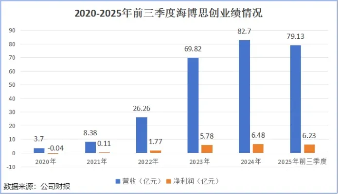 2025年前三季度,海博思创实现了营收79.13亿元,同比增长52.23%;净利润6.23亿元,同比增长98.65%。