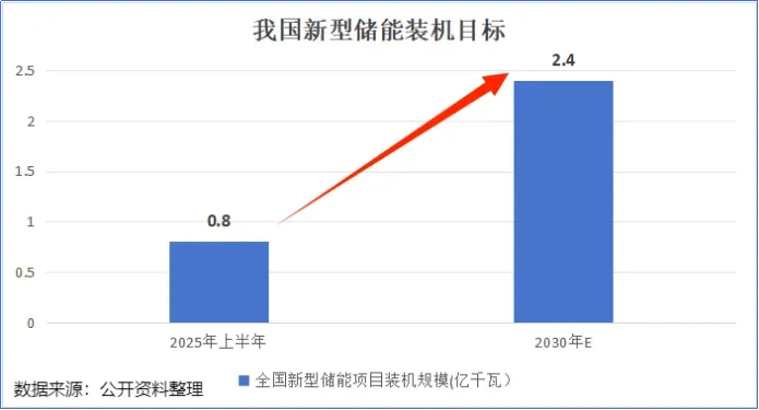 2025年上半年,全国新型储能项目装机规模达到0.8亿千瓦;而到2030年,这一数字有望进一步提升至2.4亿千瓦,显示出未来几年内储能产业将进入快速发展阶段。