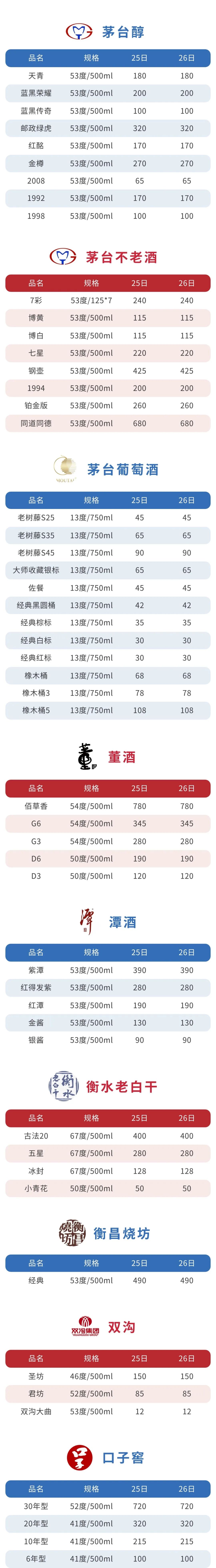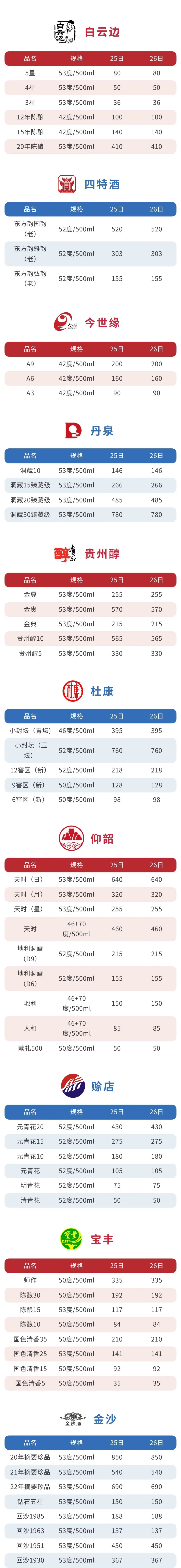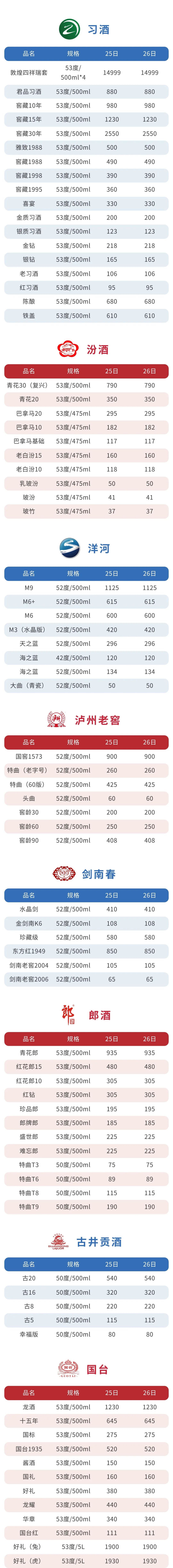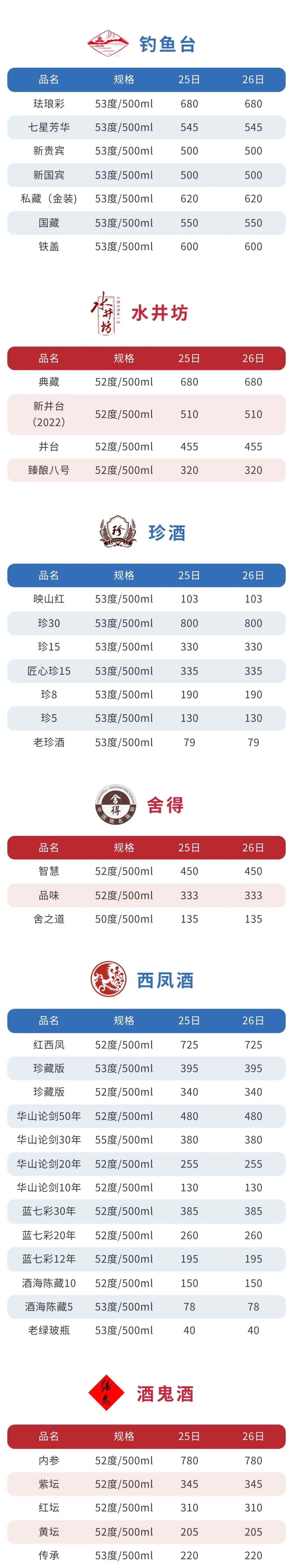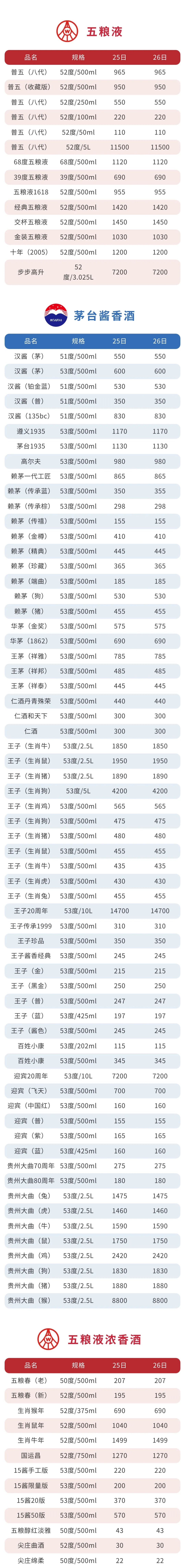 白酒 参考价 2023年3月26日