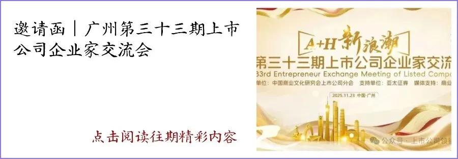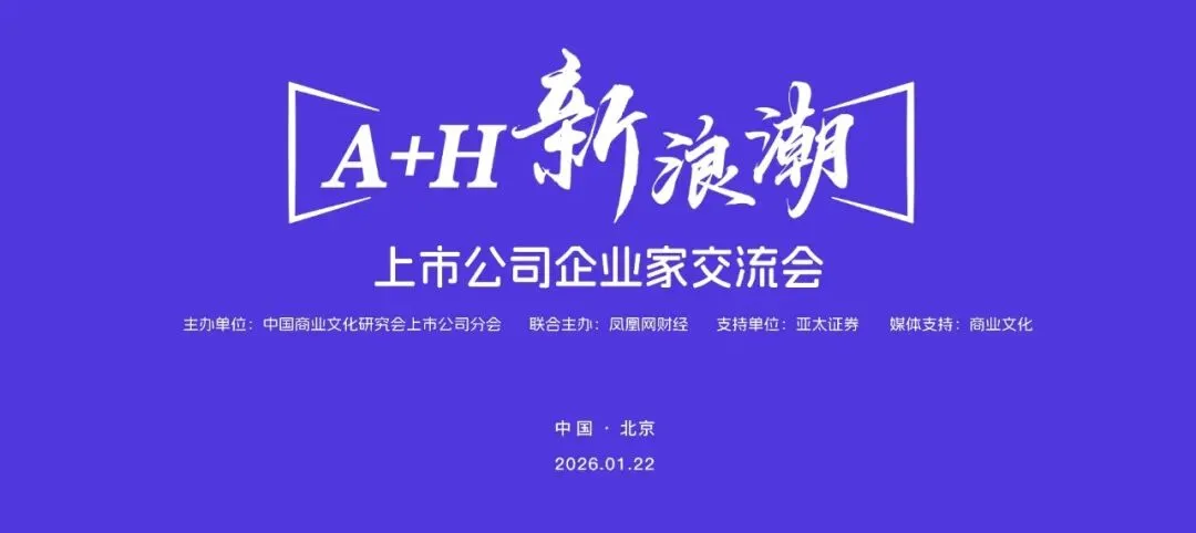 值此万象更新的喜庆时刻,上市公司领袖俱乐部立足顶级圈层资源整合与前沿价值传递的定位,联合凤凰财经、亚太证券等权威机构,打造“A+H 新浪潮”上市公司企业家交流平台。旨在汇聚政商学界顶级智慧,搭建纯粹、高端的对话桥梁,为A+H股上市公司董事长、实控人奉上一场兼具前瞻性与实效性的思想盛宴。助力企业把握政策红利、链接优质资源,产业协同的深度交流场景,把握时代脉搏,在新的一年里锚定航向、破浪前行,在资本市场浪潮中稳健前行,共同书写资本市场的崭新篇章。