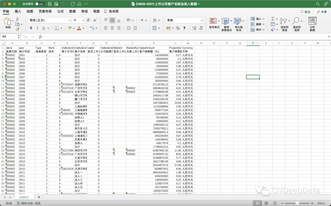 CNDD-0011 2001-2023年上市公司客户名称及收入数据