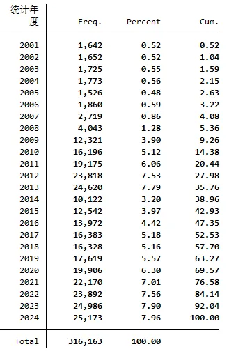 ▪ 数据年份:2001年-2024年