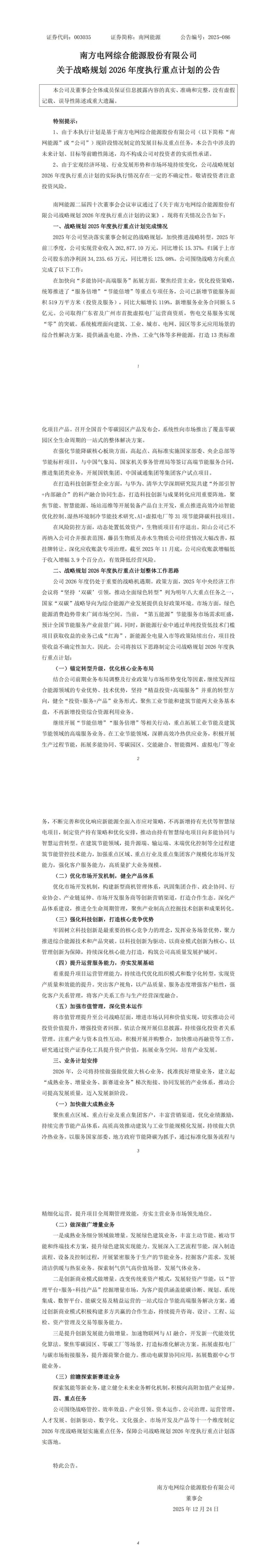 12月23日晚,南网能源发布关于战略规划2026年度执行重点计划的公告。