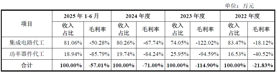 毛利率分析:公司集成电路代工毛利率分别为-18.12%、-122.02%、-67.74%和-50.28%。2024年度及2025年1-6 月,公司集成电路代工业务毛利率分别较2023年回升54.28个百分点及71.74个百分点,已呈现快速改善趋势。