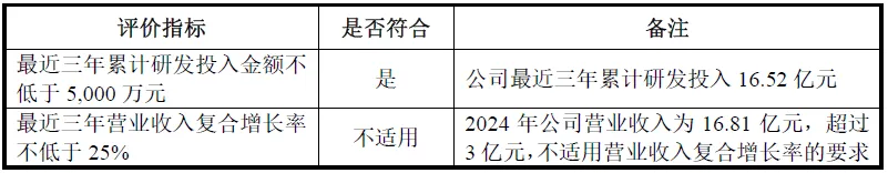 上市标准及估值:公司选择的上市标准为《深圳证券交易所创业板股票上市规则(2025 年修订)》2.1.2条之“(三)预计市值不低于50亿元,且最近一年营业收入不低于3 亿元。”公司最近一次外部股权融资对应的投后估值为253亿元,公司预计市值不低于50亿元;此外,公司2024年度实现营业收入16.81 亿元,最近一年营业收入不低于3亿元。