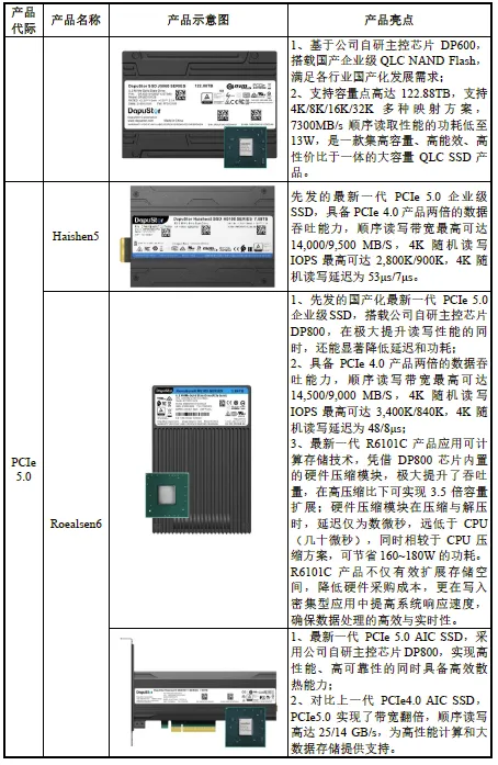 主营业务:大普微主要从事数据中心企业级SSD产品的研发和销售,是业内领先、国内极少数具备企业级SSD“主控芯片+固件算法+模组”全栈自研能力并实现批量出货的半导体存储产品提供商。