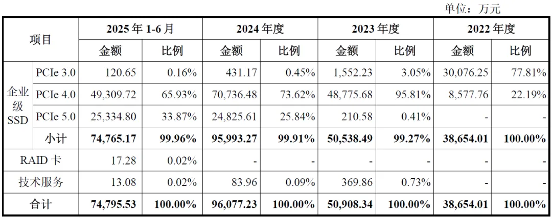 收入构成:公司主营业务收入主要来自销售数据中心企业级 SSD 产品,以及少量技术服务。随着研发实力的不断增强和品牌影响力的逐步提升,公司产品结构不断丰富,产品陆续完成客户导入进入成熟量产阶段,公司业务规模随之增长。