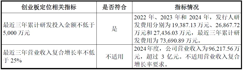 板块定位:公司符合《深圳证券交易所创业板企业发行上市申报及推荐暂行规定(2024 年修订)》第四条第二套标准相关指标要求,具体情况如下: