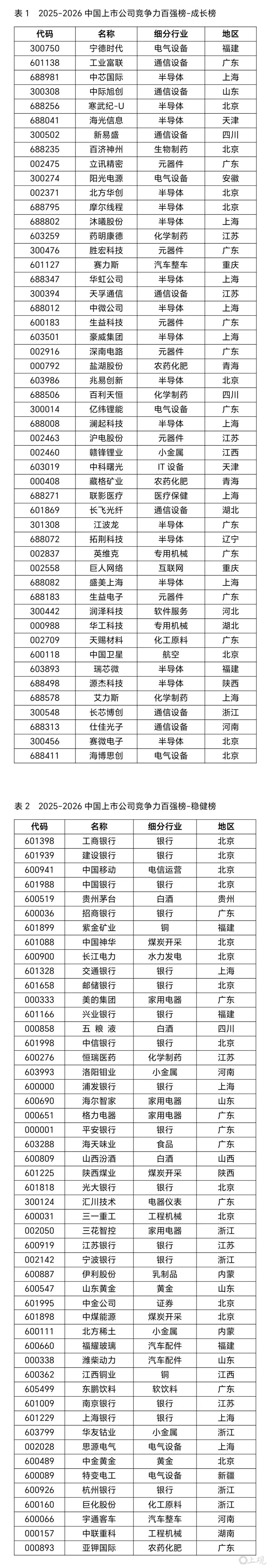 2025-2026中国上市公司竞争力百强榜
