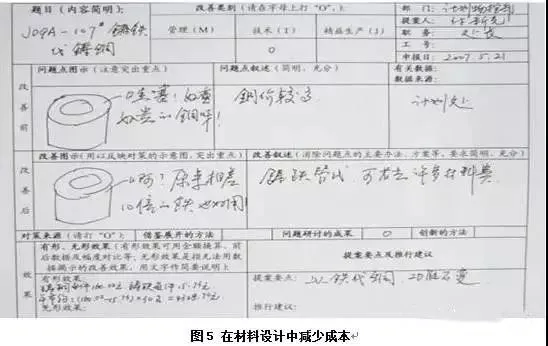 如图5所示,在材料设计中采用铜,价格高,一般为六万多元/吨,而钢才四千元/吨,而且铜的比重是8.9,钢的比重为7.8,同样一吨材料,用钢所产出的数量比用铜要多百分之十几,而且没有影响性能。所以,用钢代替铜,可以节省很多材料。