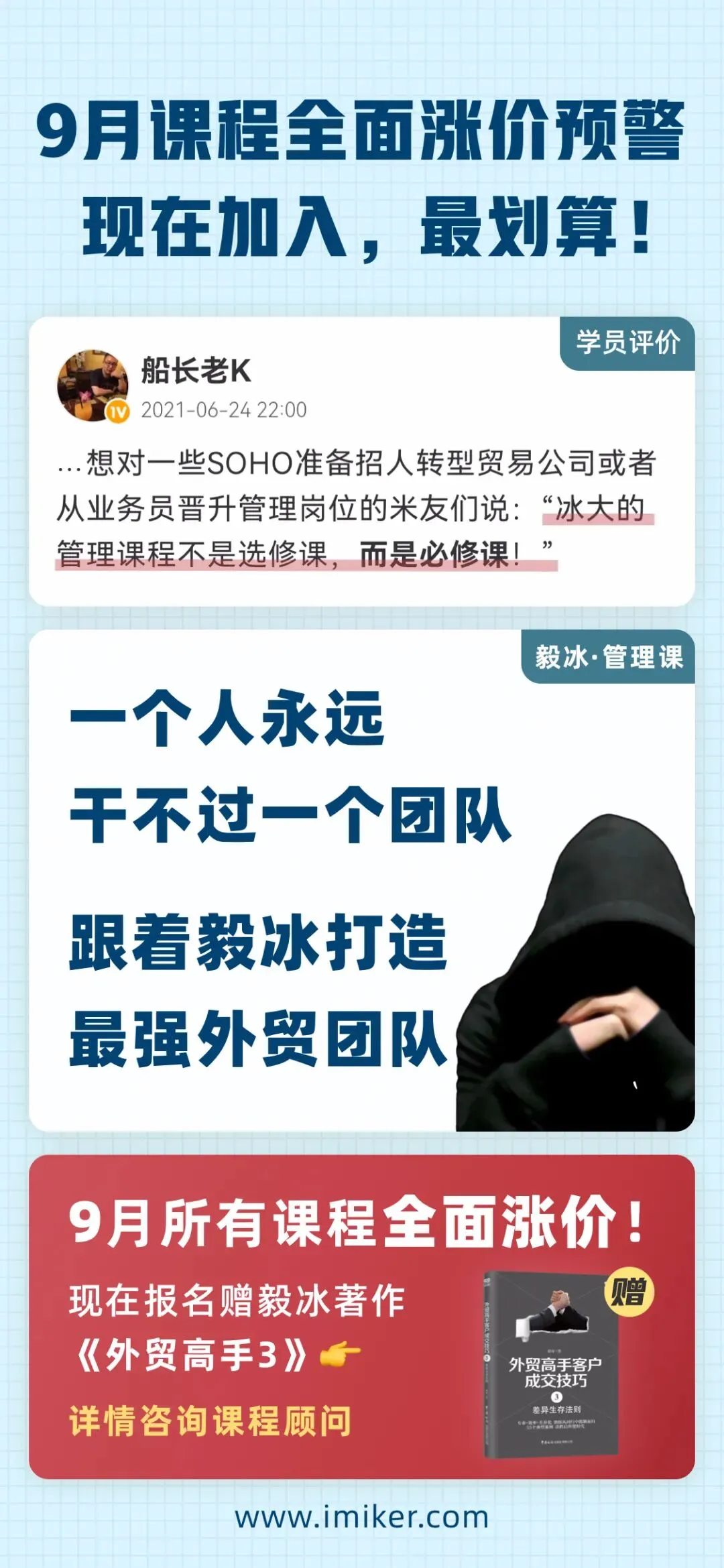 下个月所有的课程都会涨价,包括我的业务课和管理课。