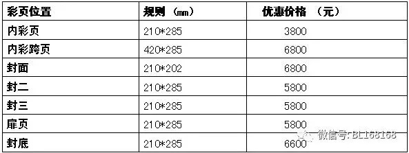 彩页价格表