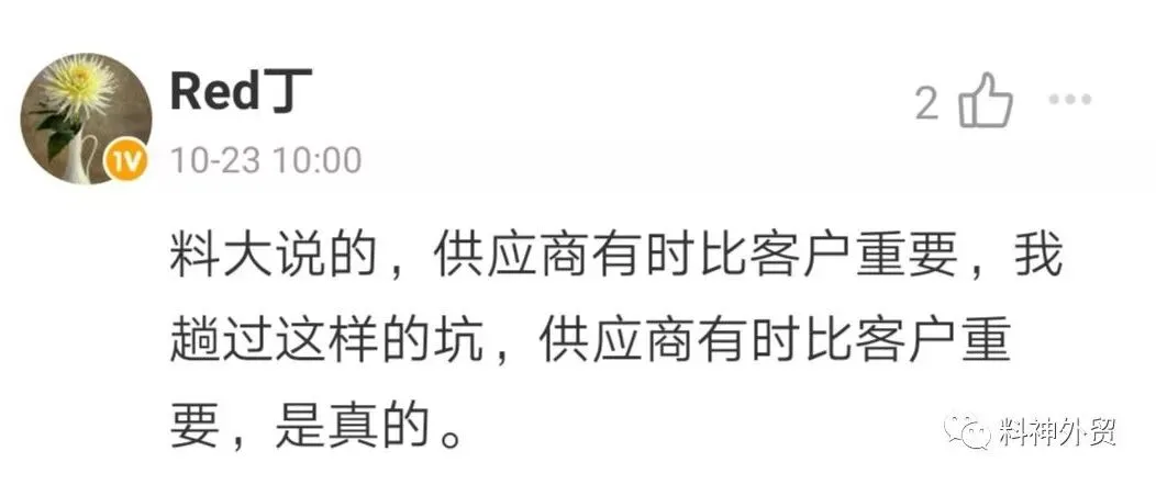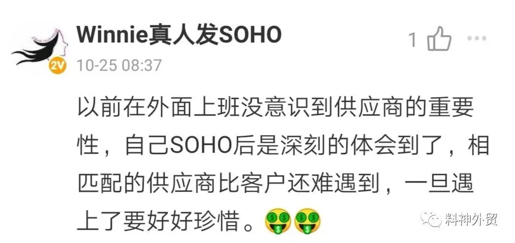 另外就是,供应商有外贸业务员是否就一定不能合作,我个人觉得也是要看情况的。