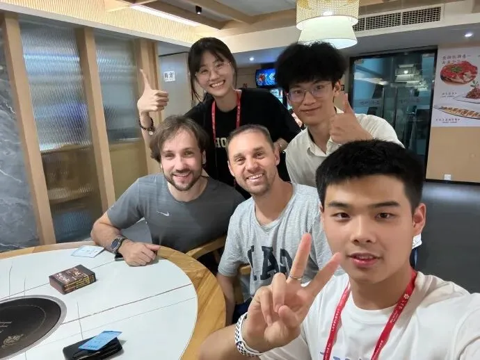 4. 今天有个哈萨克斯坦的老外(穿绿色袍子),他走向我伸出手握拳要跟我碰拳,我回应他也伸出拳头和他碰,然后他打开手变出一块巧克力,小小把戏确实让我又惊又喜