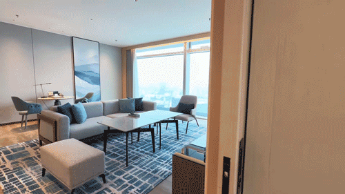 103㎡客房面积,咖啡爱好者有福了,配备咖啡机,边喝咖啡边望江景,一天疲惫全消除!