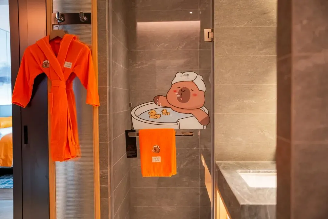 卫生间还配备了万叔公浴袍,浴袍材质亲肤柔软,还有儿童专用洗漱用品,孩子洗漱更加积极主动!