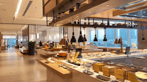 丰盛的自助式早餐,菜式选择多到眼花!来几份精致的广式早点,亦或来一碗热气腾腾的汤粉,还有西式糕点,堪称早餐盛宴~