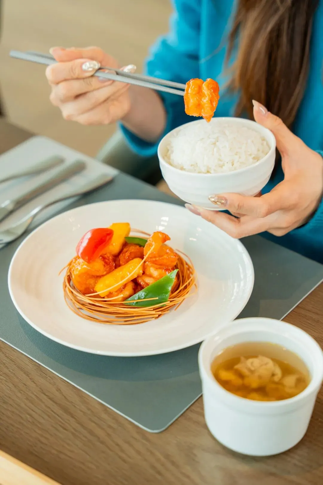 一定要先吃一碗刚煮好的菌菇汤,多种菌菇熬出来的汤最滋味醇厚!椰子鸡汤椰香温润,鸡肉鲜嫩,一勺下去健康又美味!