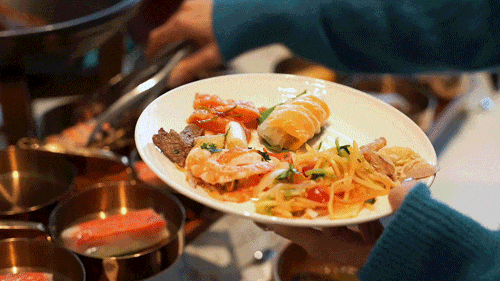 吃完火锅别急着走!自助沙拉吧有多种鲜蔬等你来DIY组合,更有甜品饮品自助区,美味又解腻~