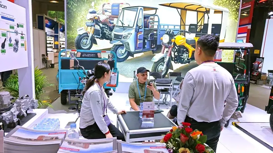 广交会首日的火爆人气,是河南隆鑫全球影响力的缩影。在“一带一路”倡议下,河南隆鑫依托海外营销网络、快速打开东南亚、非洲、拉美等国际市场,出口产销量多年位居行业前列,是国内“走出去”最早、国际化程度最高的三轮车企业之一。