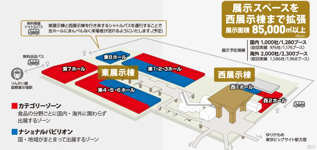 「FOODEX JAPAN 2024」较上届扩大规模,将使用东京有名展览中心的东展览馆1至8号馆和西展览馆1至2号馆,展览面积超过85,000平方米(比上届扩大130%)。预计参观人数将达到8万人次(其中海外1.5万人次),预计买家不仅来自日本,还将来自包括亚洲在内的世界各地的买家前来参观,并积极进行业务洽谈。