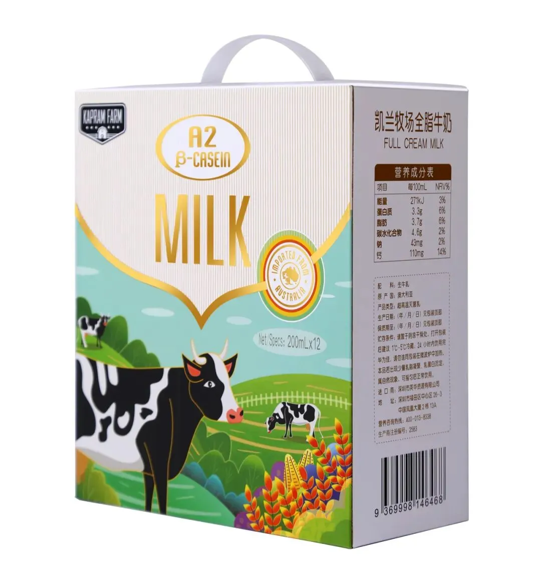 源自黄金奶源带, 草饲澳大利亚纯种A2荷斯坦奶牛,自由散养,A2-β酪蛋白含量99%以上,亲和肠胃,更易吸收。