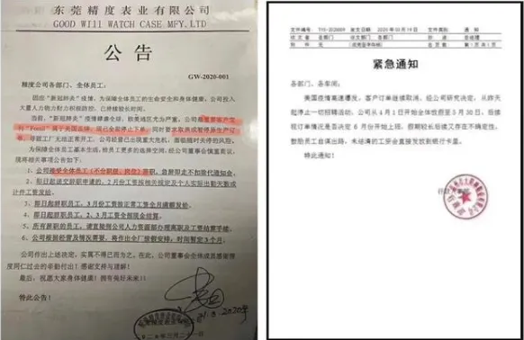 3月21日,东莞精度表业有限公司称Fossil取消或暂停原生产订单,导致公司出现重大危机,面临随时关停的风险;